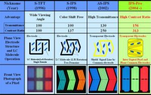 Las siglas IPS provienen de cambio en plano, y son unos paneles que se crean en respuesta de las limitaciones que tenían los paneles TN primeros del mercado.